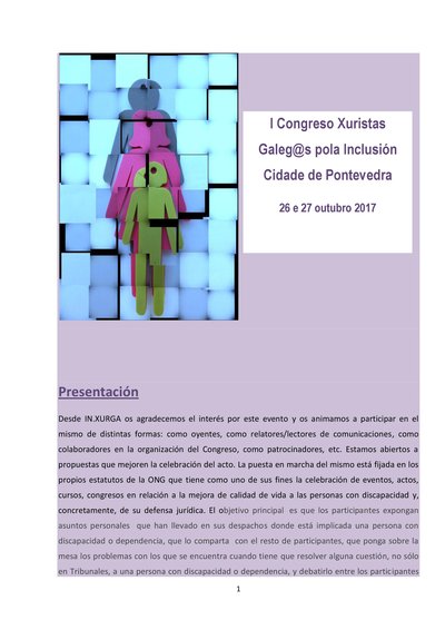 I Congreso Jurídico IN.XURGA: Puesta en valor de la intervencióndel letrad@ en materia de discapacidad y dependencia
